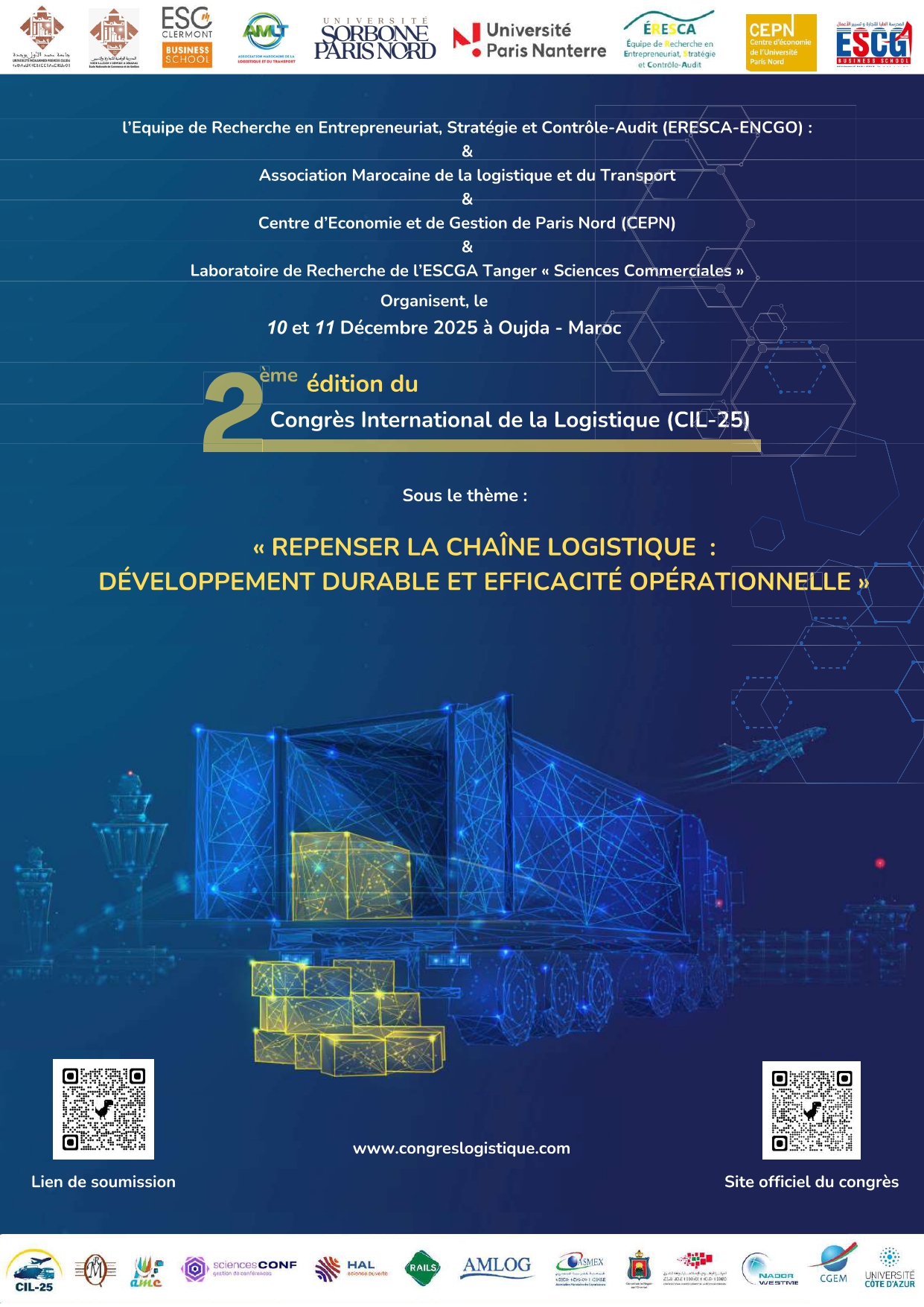 L’École Nationale de Commerce et de Gestion d’Oujda organise, les 10 et 11 décembre 2025, la 2ᵉ édition du Congrès International de la Logistique (CIL-25). Placé sous le thème : « Repenser la chaîne logistique : développement durable et efficacité opérationnelle », l’événement ambitionne de rassembler experts, chercheurs, professionnels et décideurs autour des enjeux majeurs qui transforment profondément les chaînes d’approvisionnement.